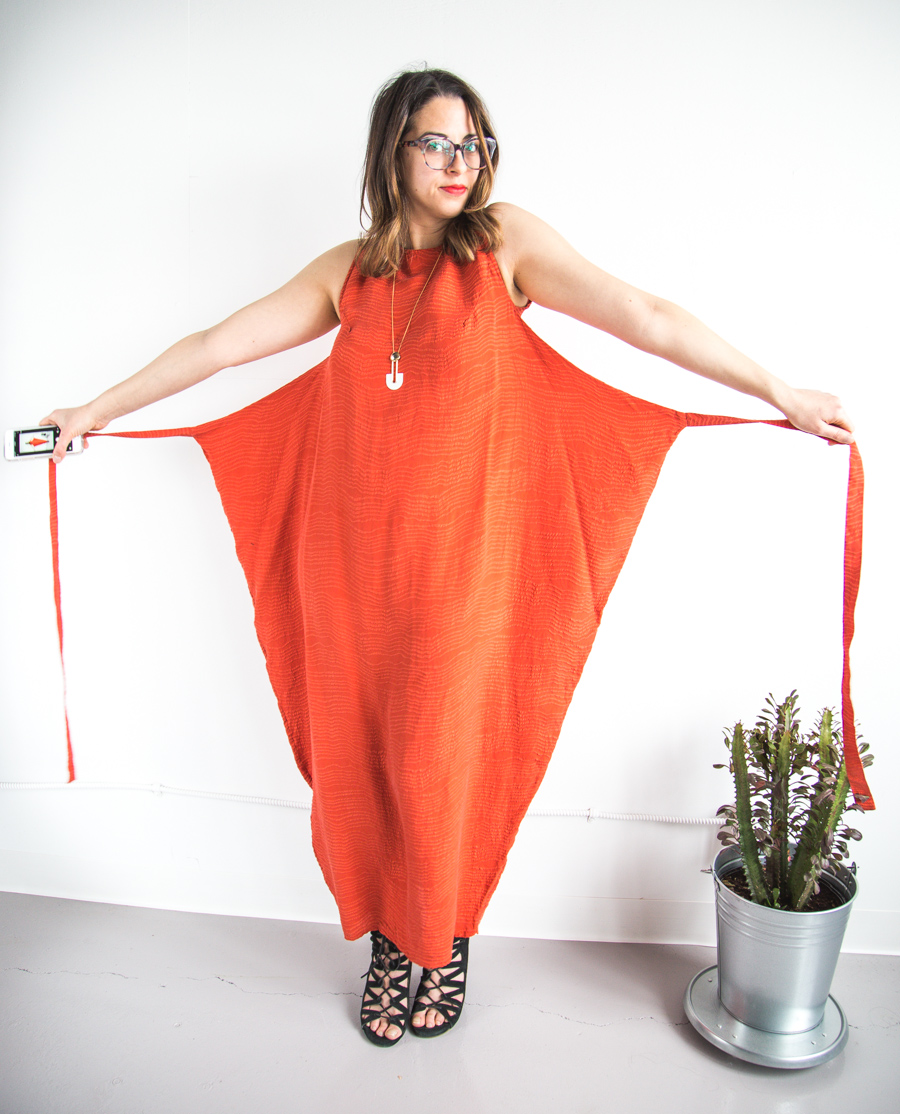 Из простой выкройки прямого платья можно сделать очень оригинальную модель с завязками.