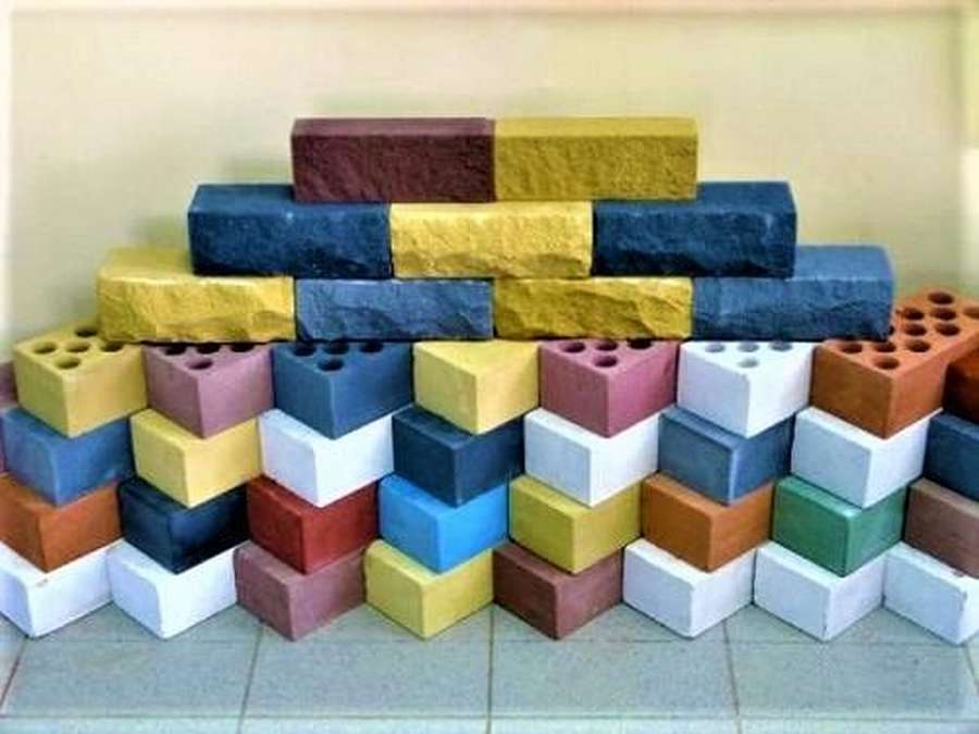 Кирпичи индийской компании Rhino Machines из песка и переработанного пластика. Используется 20% пластикового вторсырья, а также 80% литейной пыли заодно с кварцевым песком.