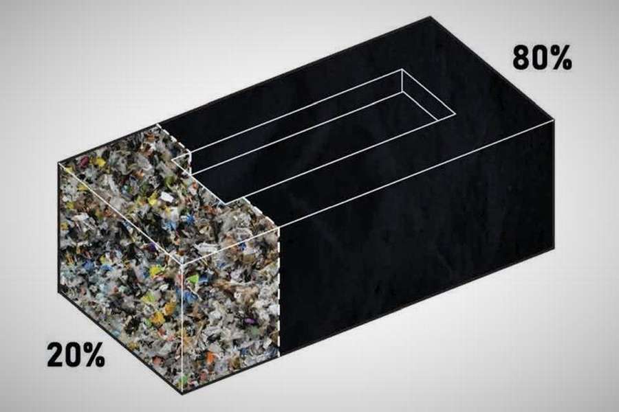 Кирпич получен путем переработки пластиковых бутылок. Пластиковые частицы заменяют традиционный песок. Кирпичи получаются более легкими, менее габаритными, стойки к возгоранию, а теплоизоляционные свойства в 5 раз выше, чем у обычного кирпича.