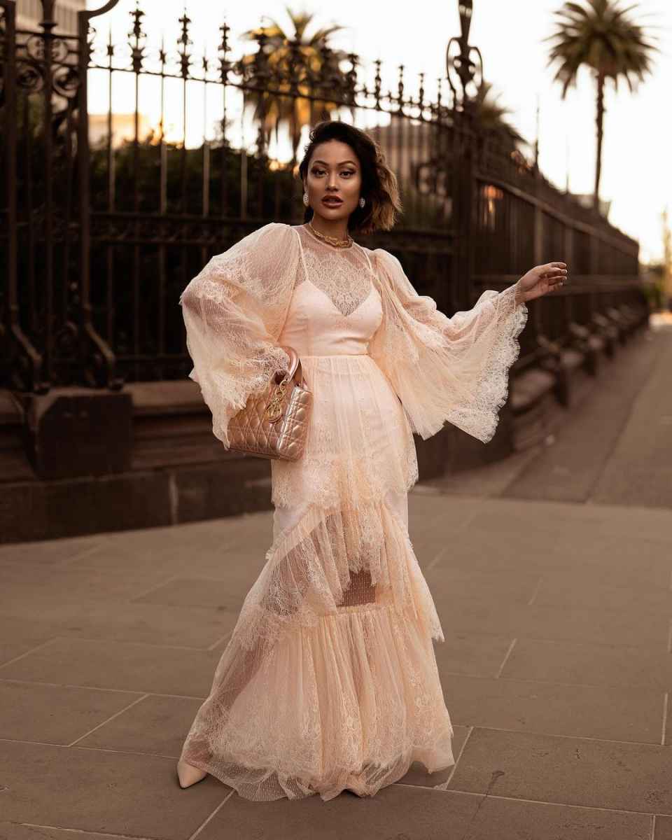 Однако в том случае, если свадьба будет с венчанием, не прогадайте и выберите максимально закрытый, элегантный и простой наряд. Длина по щиколотку, закрытые руки, пастельная или нюдовая палитра (+ захватите с собой шляпу или платок) поможет вам выглядеть женственно и при этом максимально соответствовать ситуации.