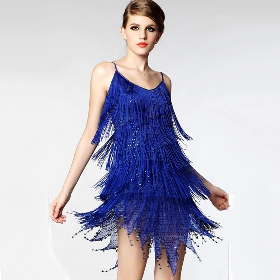 Открытый и откровенный вариант рейтингового платья ярких, насыщенных оттенков. Наряд короткий, состоит из двух элементов. Часто дополняют бахромой.