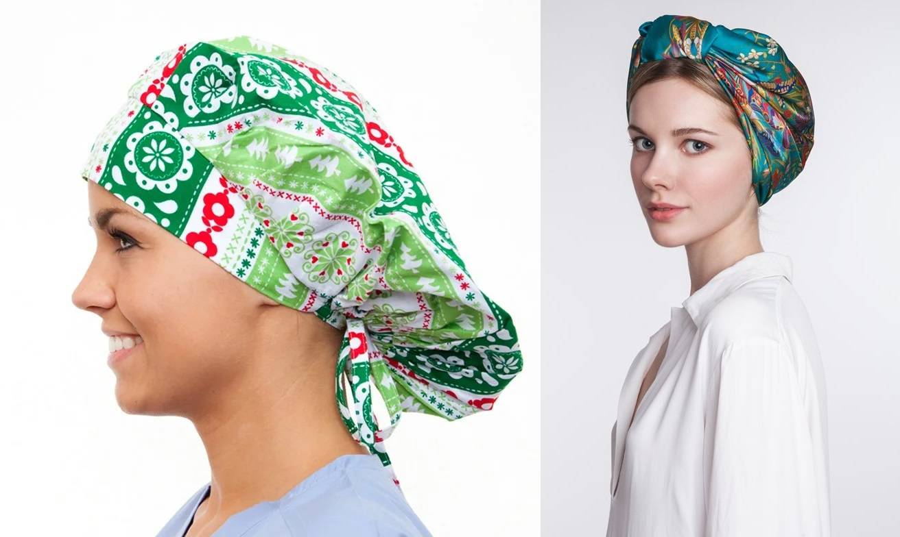 Подобные косынки на голову подходят для кухонных работ, дабы в процессе готовки случайный волосок не смог попасть в еду.