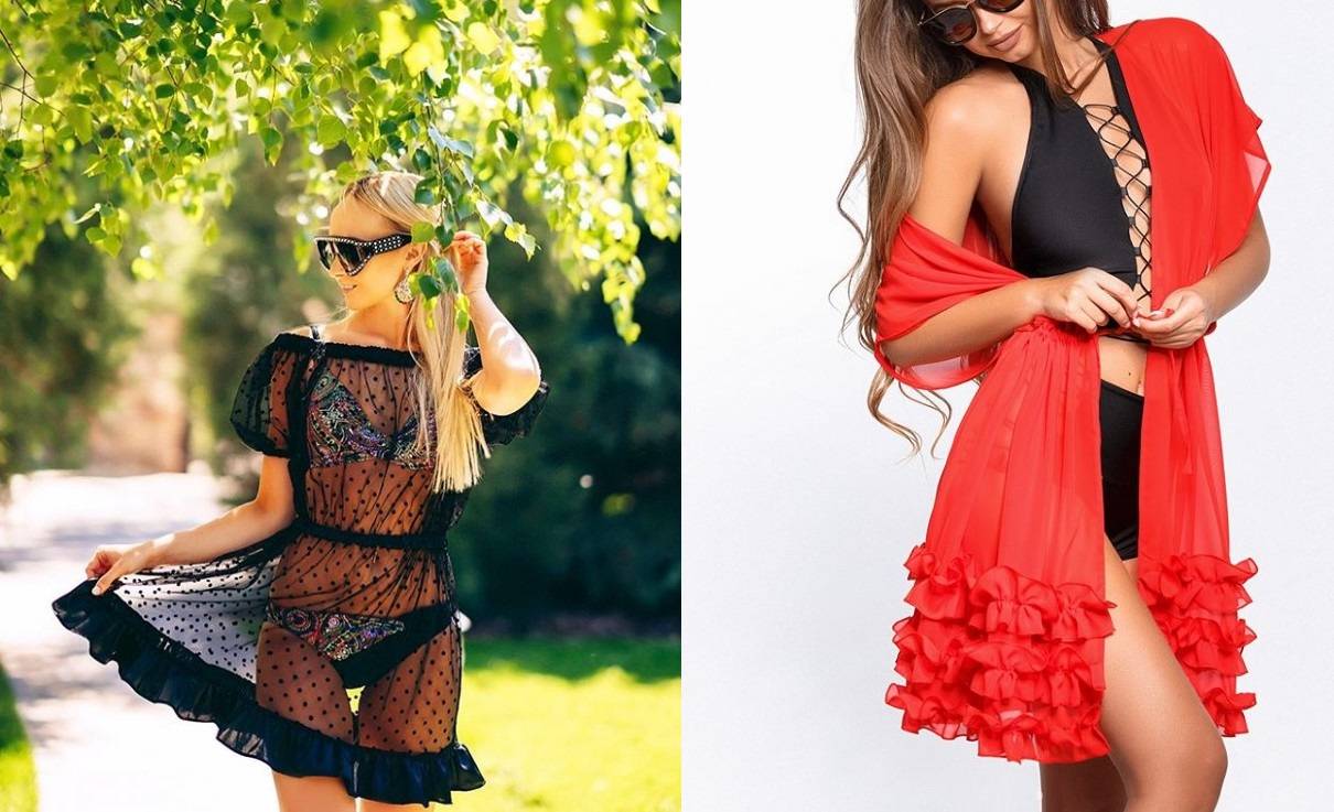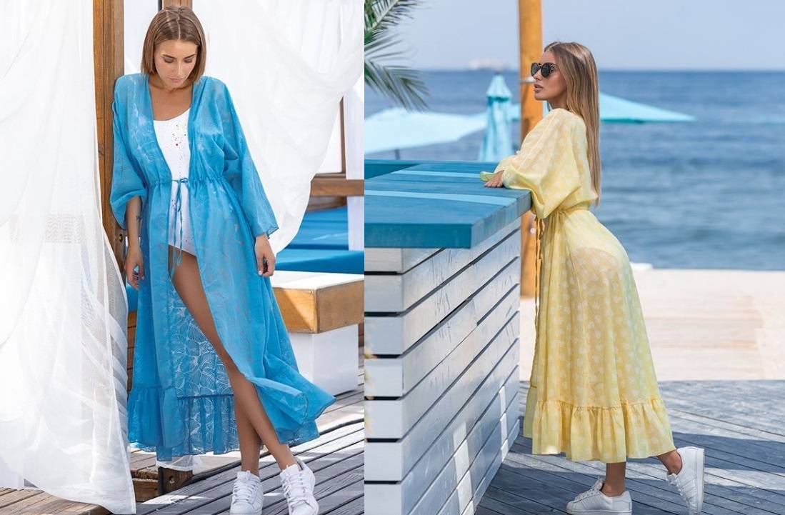 Встречайте халаты-кимоно, сарафаны ажурной вязки, комбинезоны и ромперы, а также длинные юбки, которые идеально сочетаются с шарфом-лифом купальника из того же материала.