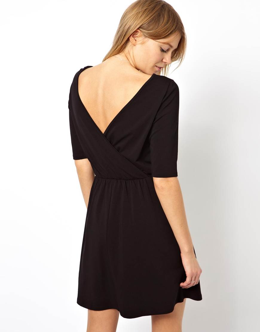 | Запах на спине | Модель выглядит привлекательно, необычно и стильно. На спине создается треугольная оголенность. Глубина выреза бывает разной. Подобным элементом часто украшают платье-футляр. Однако если вырез слишком глубокий, он будет уместен только на вечерних туалетах |