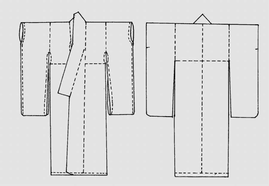 Выкройка схема японского кимоно, по которой можно сшить любую верхнюю одежду от халата до пальто.