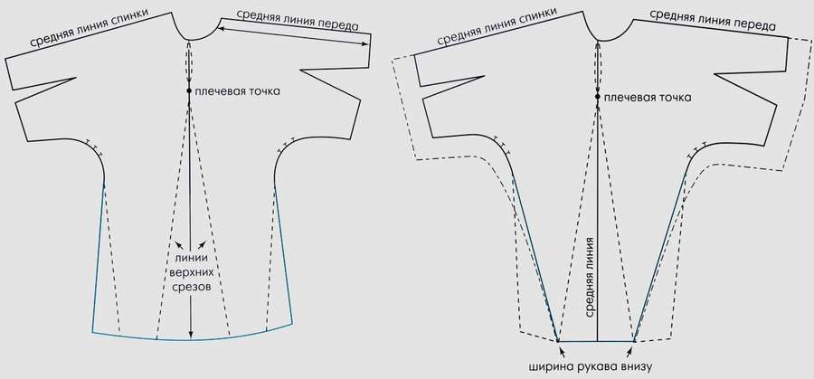Универсальная выкройка кимоно для трех вещей с рукавами разной длины.