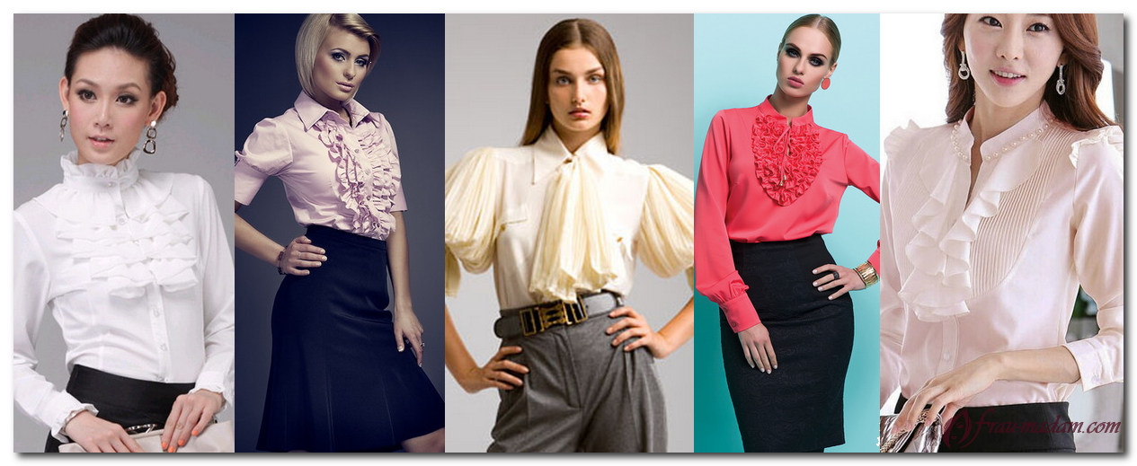 Выбираем приталенные блузки или под заправку, или навыпуск, но следим за тем, чтобы их длина не доходила до массивных бедер.