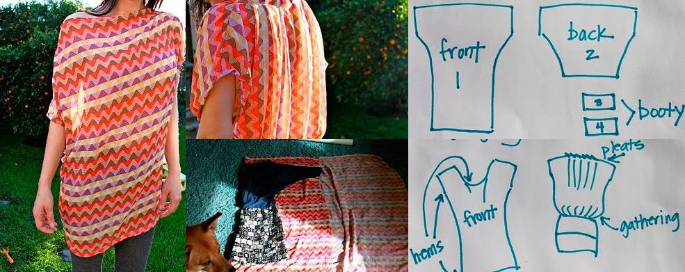Тунику своими руками можно создать очень быстро. Так как изделие само по себе простое в построении и пошиве, то для него не всегда требуется детальный точный чертеж – вполне возможно обойтись и без выкройки в принципе.