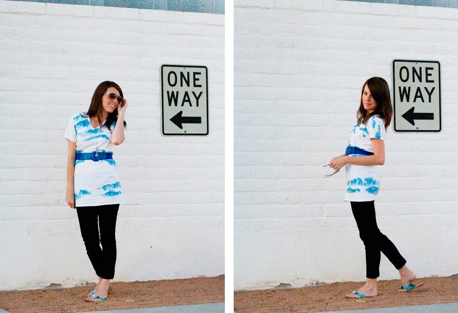 Вот так будет смотреться наша туника с поясом на талии. Боковые швы необходимо сшить.