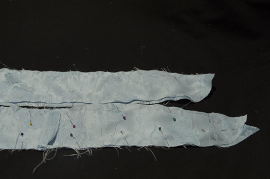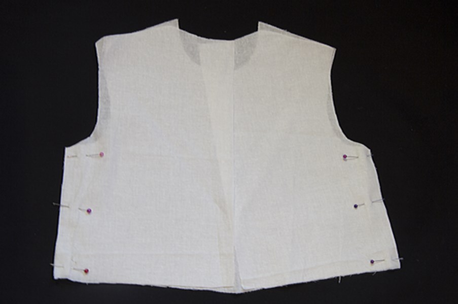 Скалываем боковые срезы на подкладке лифа.