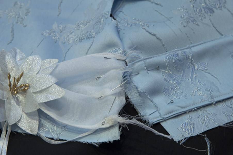 Прикалываем юбочку к лифу.