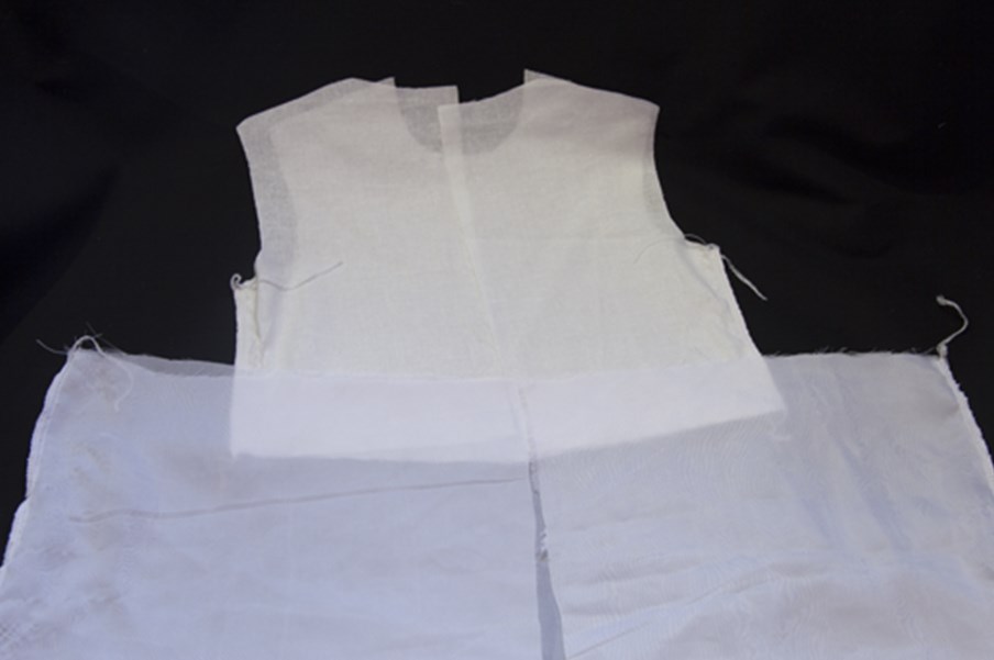 Совмещаем боковые швы лифа юбочки подкладки, скалываем.