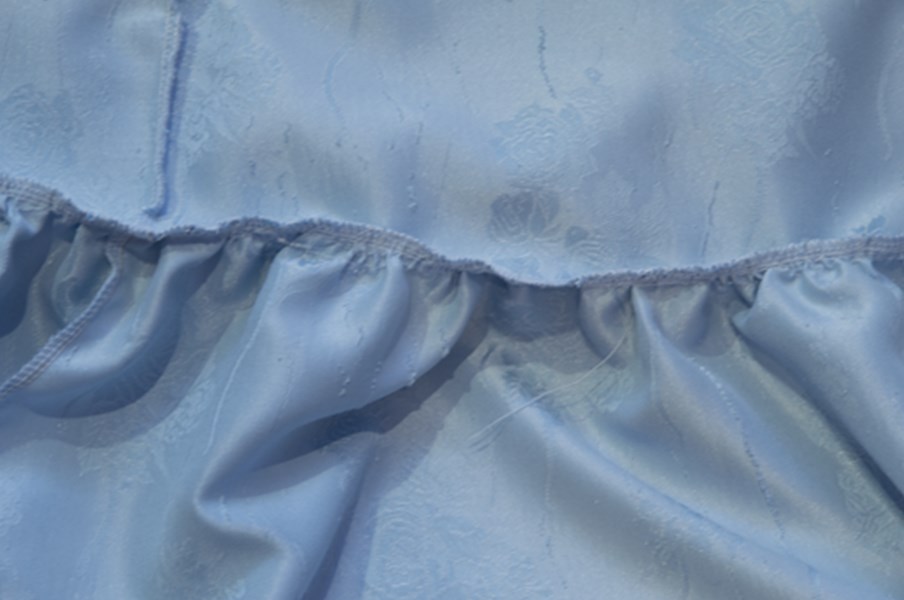 Присбориваем верхний срез юбочки подкладки, потянув за нить из шпульки и равномерно распределяя складочки.