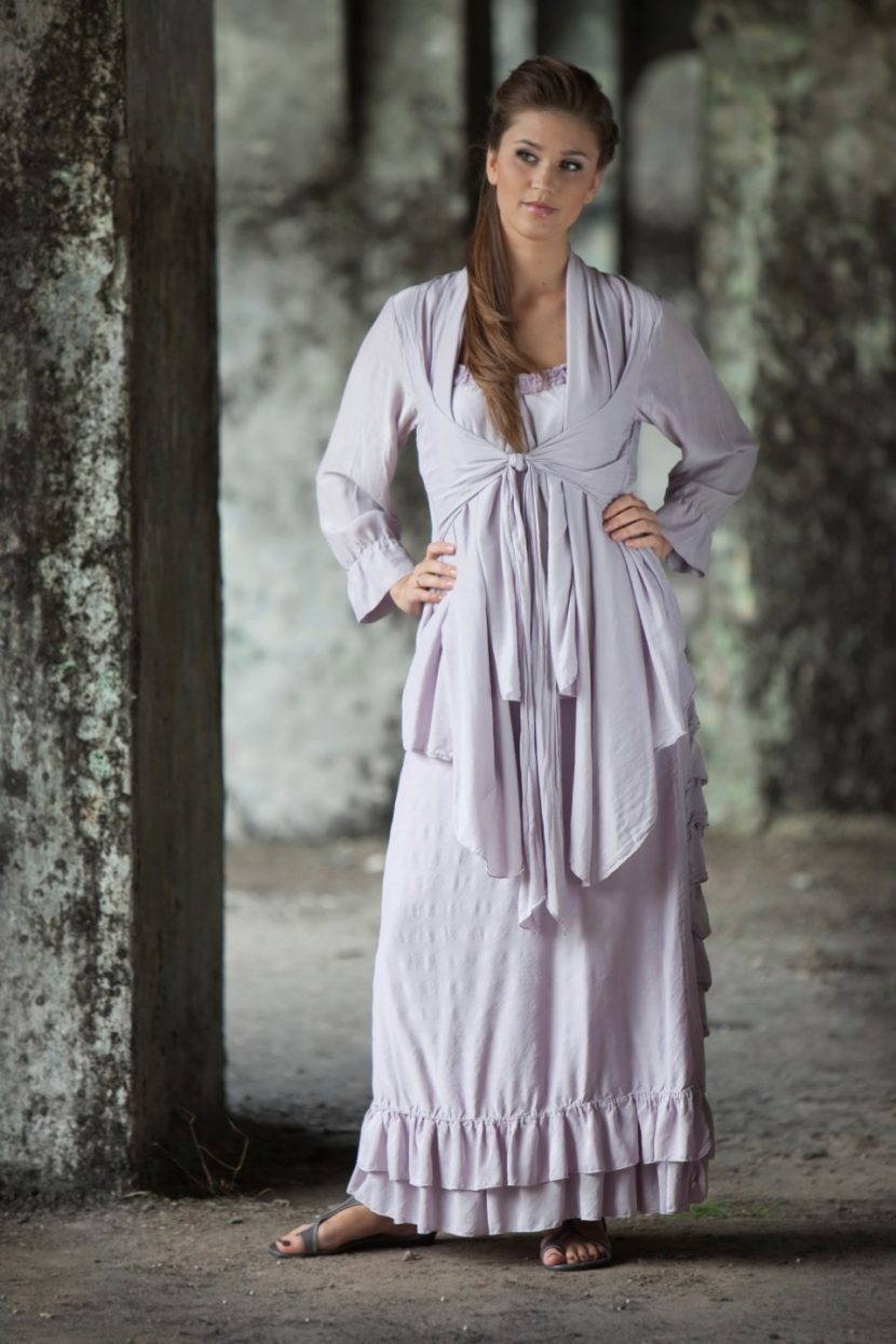 Роскошный струящийся материал натурального происхождения идеально подходит для роскошных платьев с разрезами. Они могут быть как прямыми, так и более свободными, расклешенными.