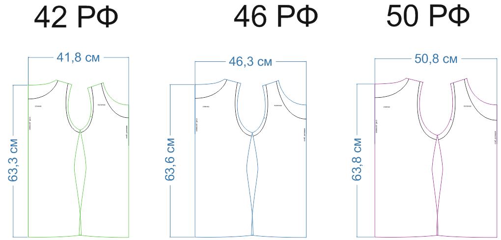 В комплект лекал входят: выкройки спинки и полочки (смотрите на рисунке).