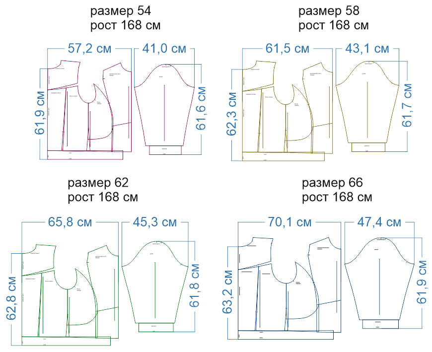 | размер 60, рост 168 см | 120 | 101 | 128 | скачать выкройку PDF |