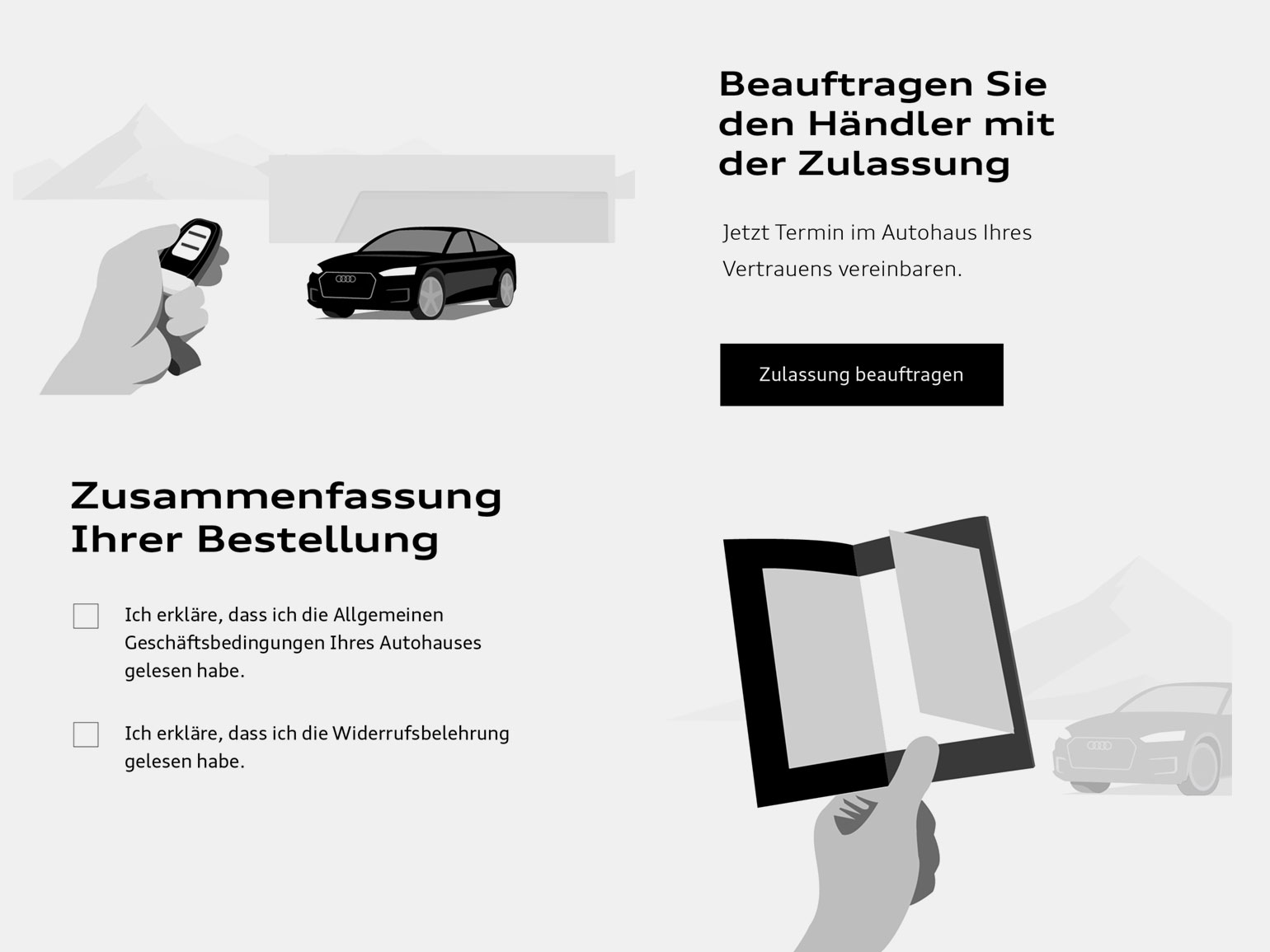 Иллюстрации в фирменном стиле Audi все чёрно-белые, с жёсткими границами света и тениИзображение: Audi