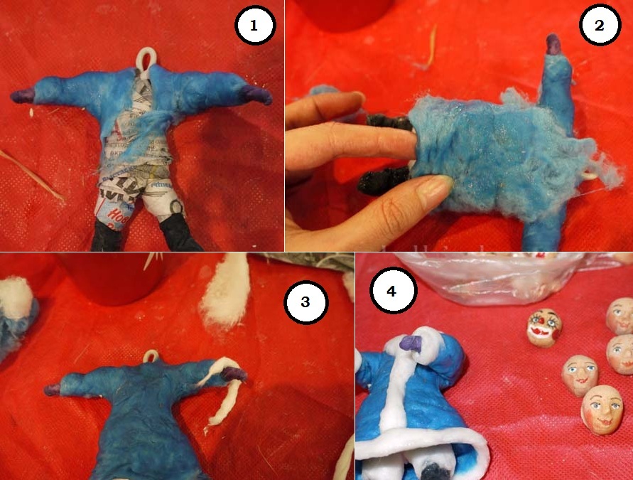 - Голову и ноги с помощью ПВА приклейте к телу. В конце приклейте ватные шарики ― это будет шерсть новогодней овечки.