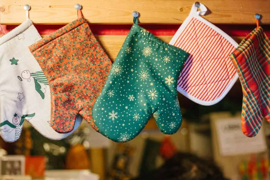 2 Не используйте легковоспламеняющиеся ткани: синтетику, атлас. Всё-таки иногда приходится брать посуду с открытого огня и можно нечаянно дотронуться до него. Хлопок сразу не прихватится, а вот синтетические ткани – моментально загорятся.