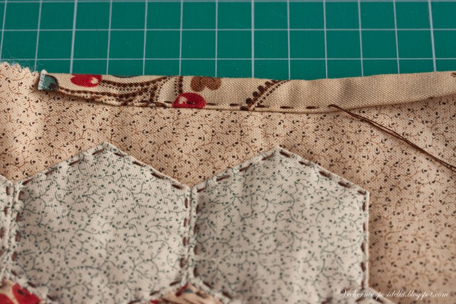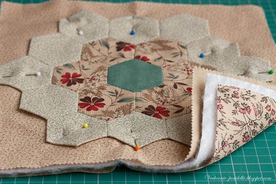 Шаг 4. Вырежьте из флизелина такие же элементы. Проклейте окантовку. Соберите детали так, как показано на картинке и простегайте.