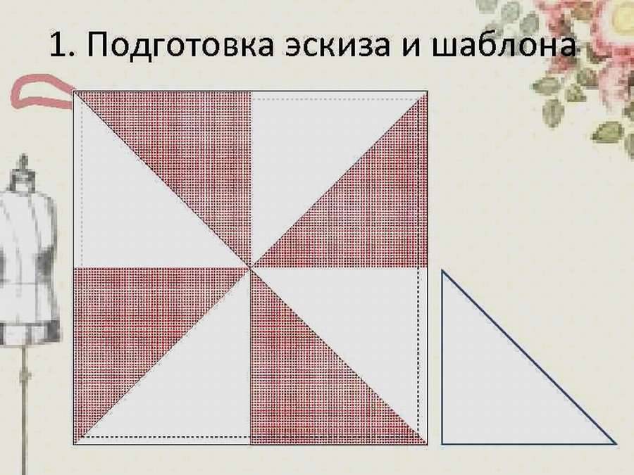 – нужно будет сделать квадратные элементы, а затем обработать их на машинке. - Шаблонное шитье