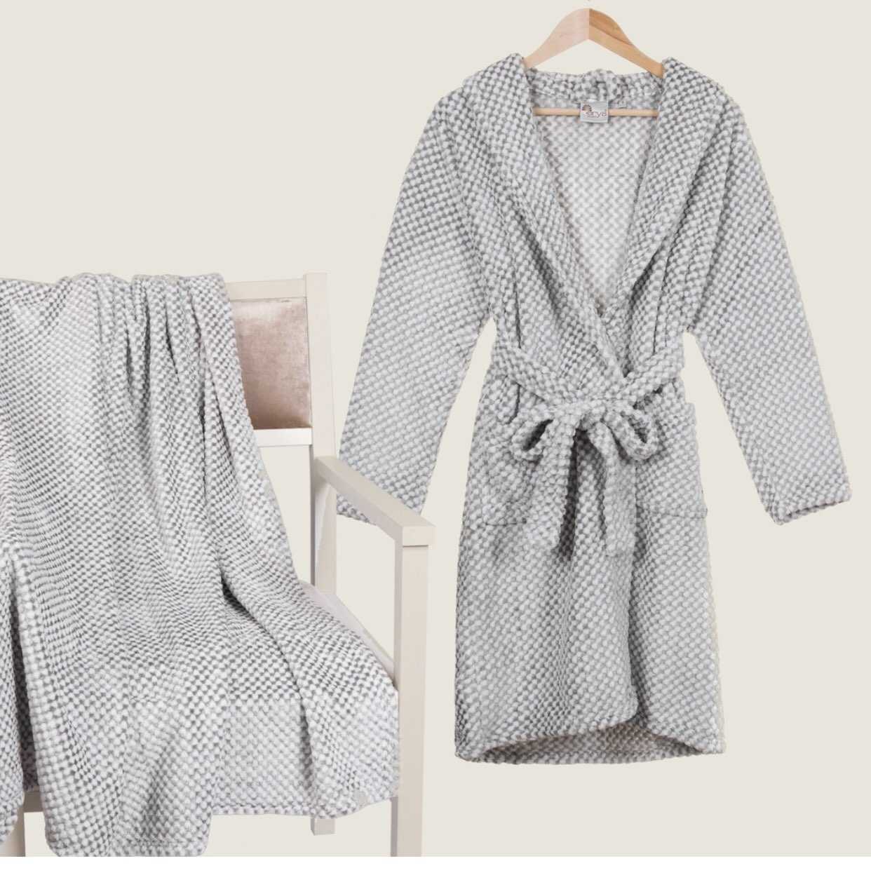Уютный халат с рукавами выглядит красиво, хотя фасон и довольно простой.