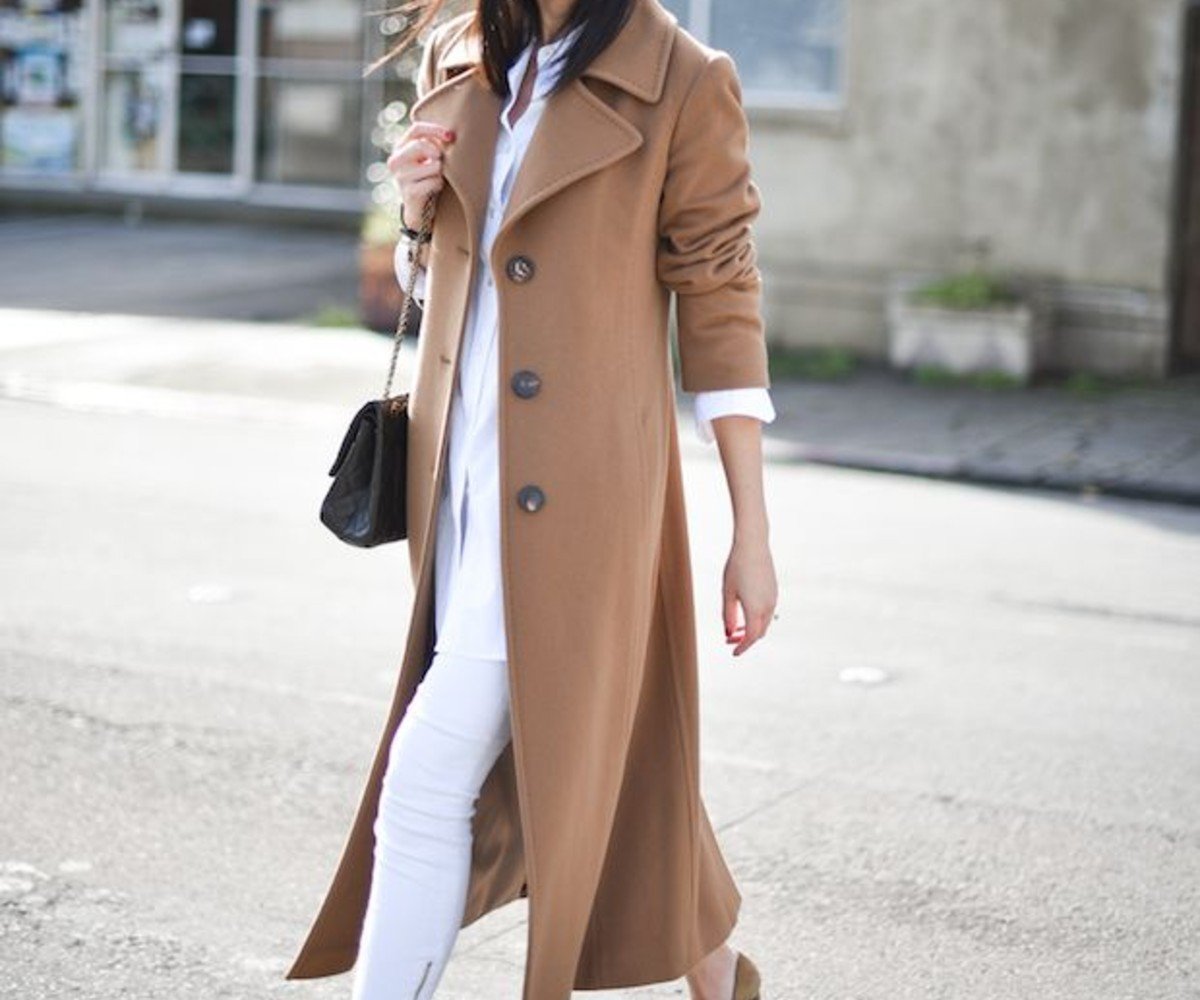 - Оставлять расстёгнутой верхнюю вещь образа – пальто, жакет, кардиган, тренч.