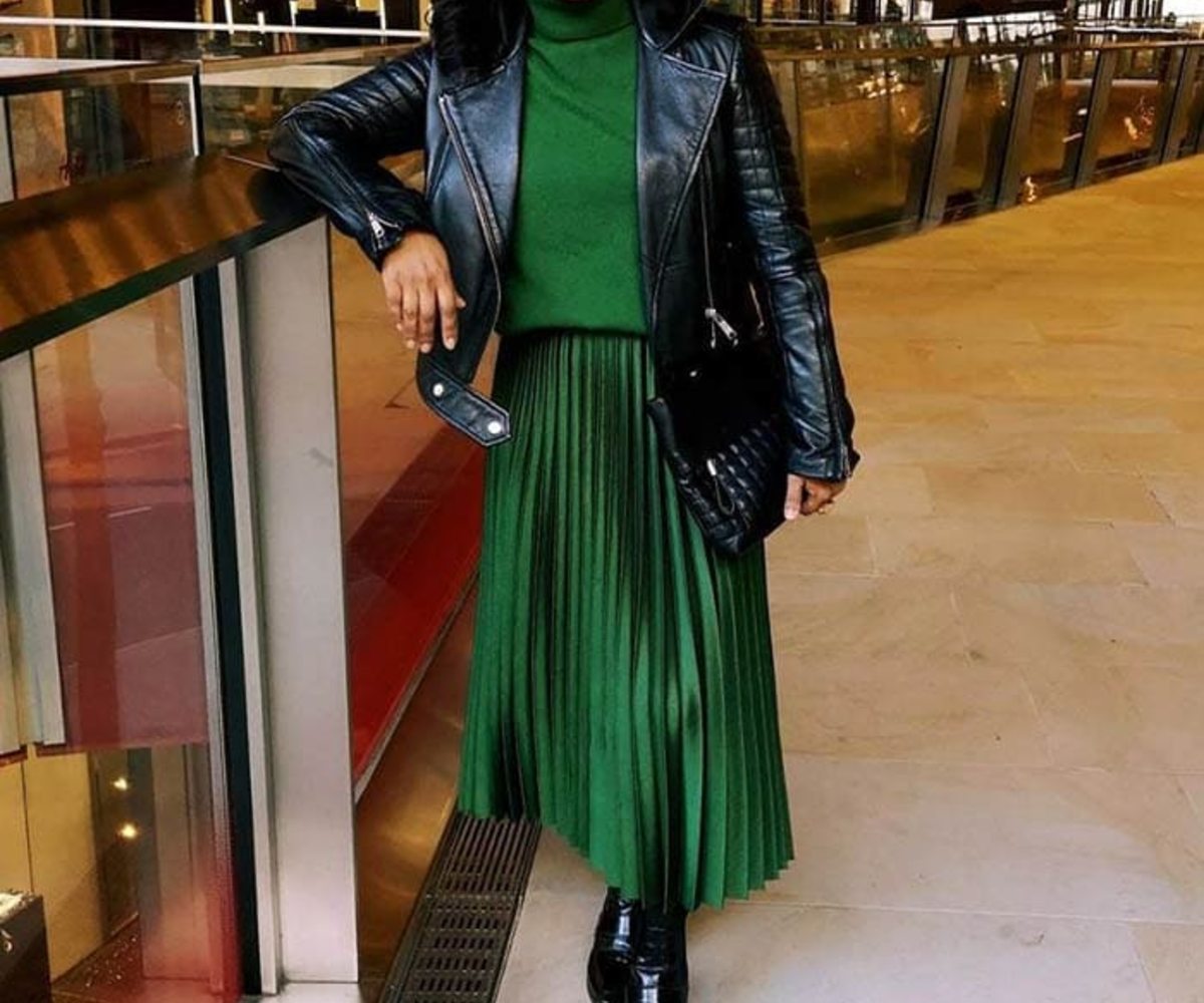Но использование вертикали цвета в одежде не должно заканчиваться на монохромном образе. Вариант с подбором верха в тон низа работает так же хорошо. Такой образ можно дополнить контрастной верхней одеждой.