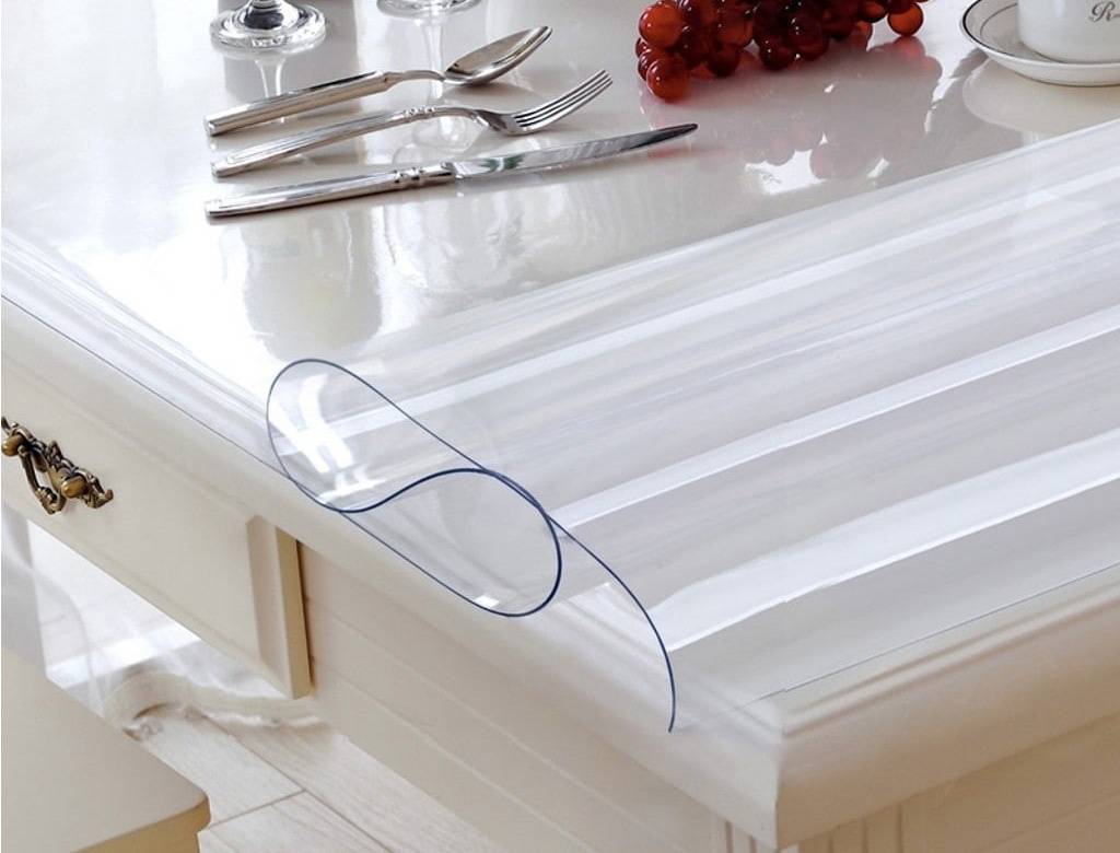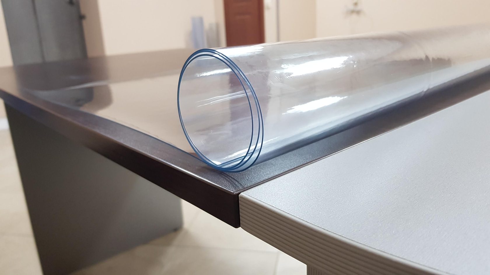 Оно незаметно для глаза, а его прозрачность не заслонит фактуру поверхности, это важно для столешниц, изготовленных из дерева или камня; Прозрачное покрытие ограничит доступ УФ-лучей, приводящих к выцветанию поверхности столешницы; Такое покрытие справедливо считают термостойким. Не изменяет форму при воздействии высоких температур; Покрытие может быть использовано не только на кухне или в столовой, но и для защиты рабочего стола в кабинете. Под него можно вкладывать записки, листки с напоминаниями или номерами телефонов