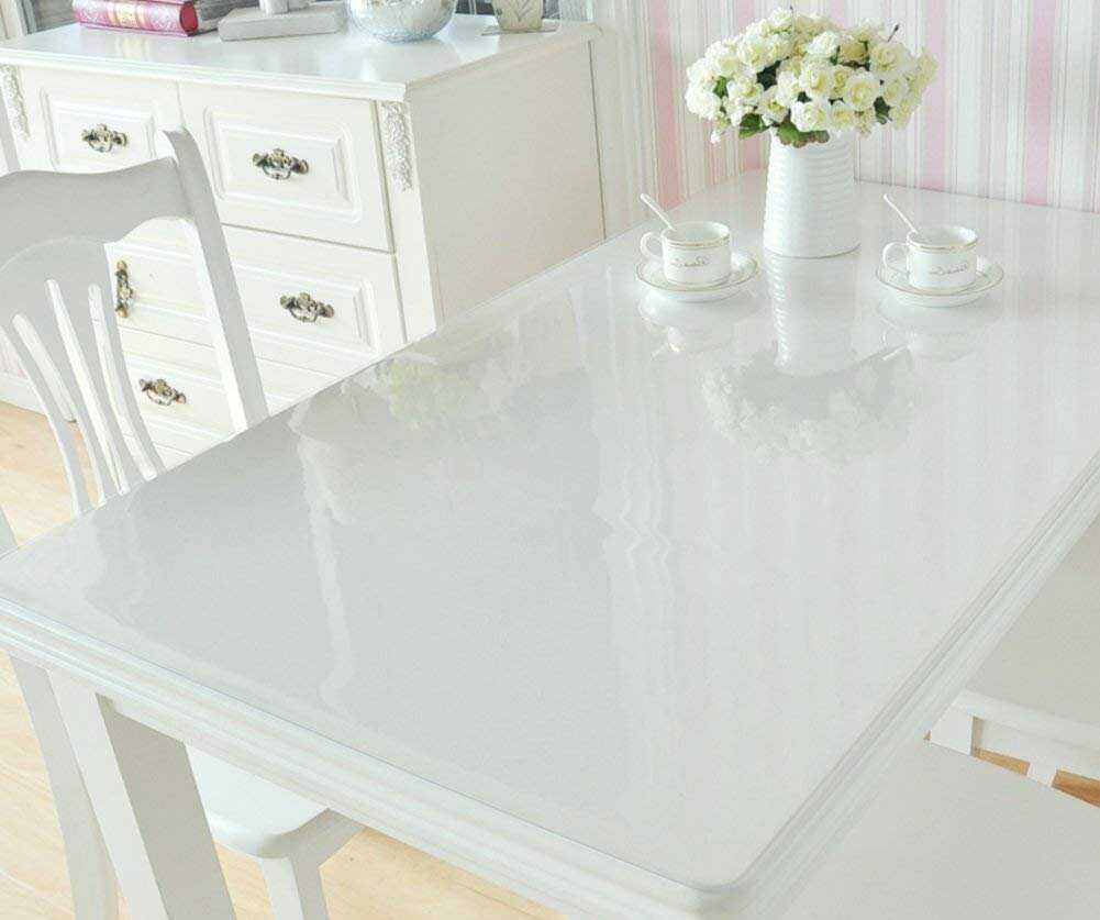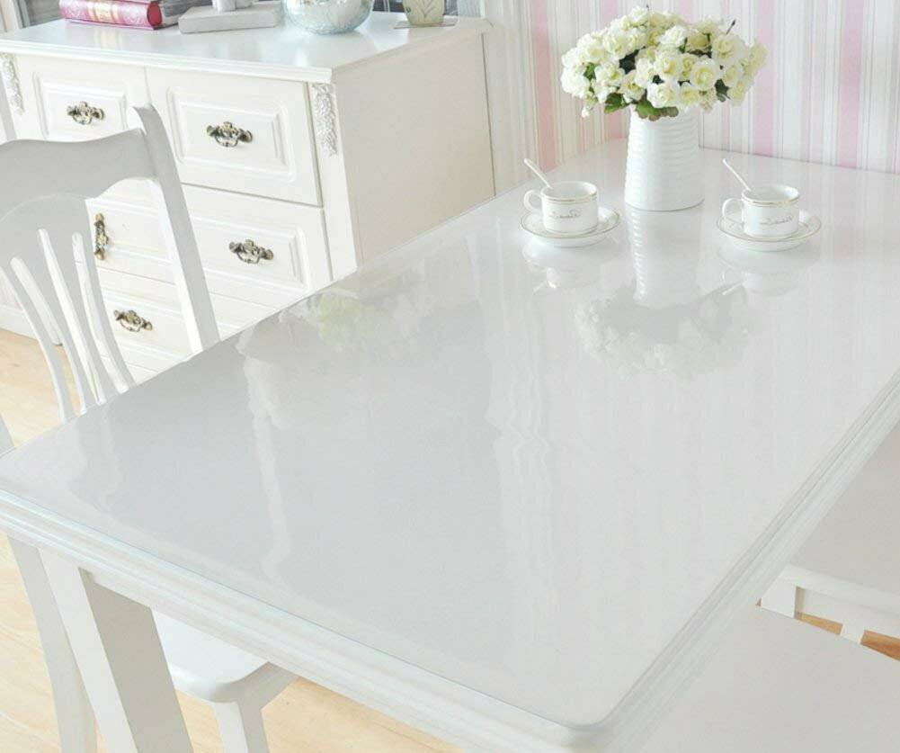 Также вы можете купить рулон прозрачной силиконовой скатерти и вырезать ее самостоятельно под форму и размер необходимой поверхности.
