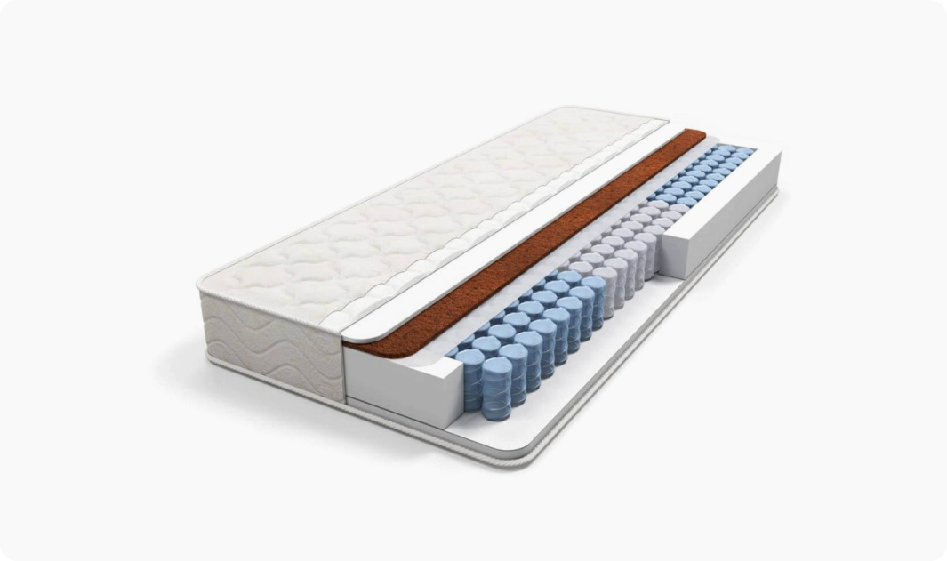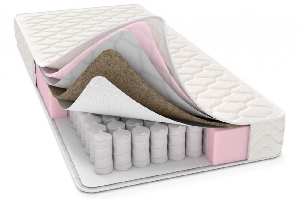 Основу любого пружинного изделия составляет пружинный блок, который с обеих сторон дополняют настилочные слои. Последние могут быть выполнены из разных материалов, от упругого натурального латекса, до слоев натуральной кокосовой койры, которая отличается высоким показателем жесткости.