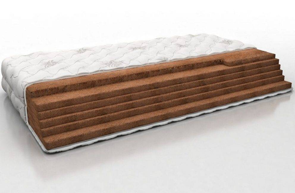 В основе наполнителя – кокосовая койра (одревесневшее волокно). Материал жёсткий, но долговечный, хорошо вентилируется. Сам материал представляет собой спрессованную гибкую плиту толщиной до 4 см, может быть пропитан латексом.