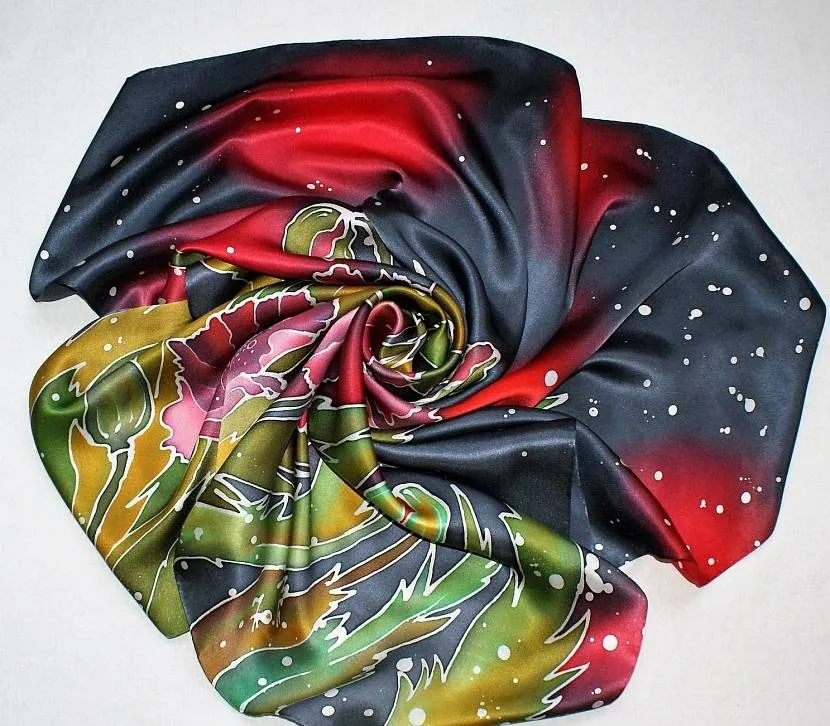 Платок с акриловым рисунком, выполненным методом горячего батика Источник livemaster.ru