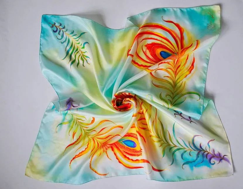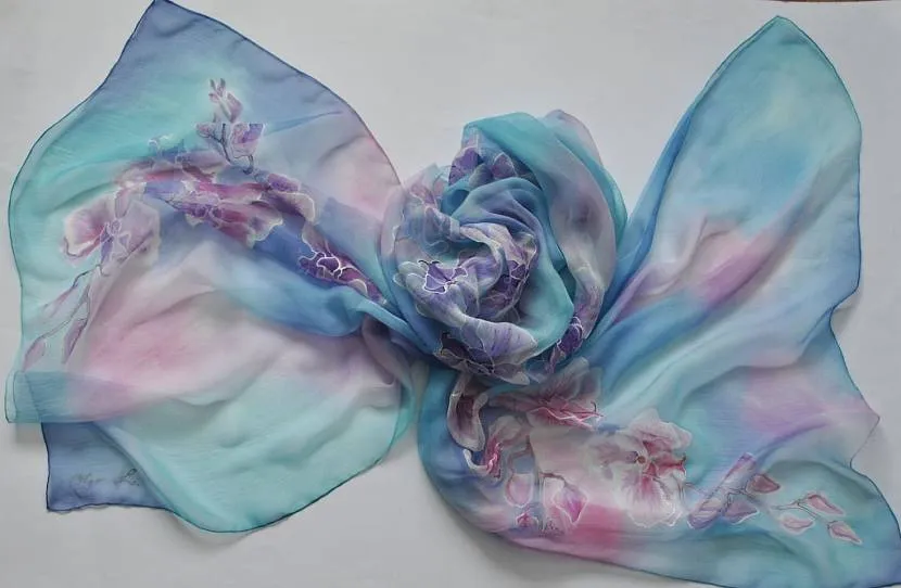 Легкий шелковый платок с росписью акриловыми красками методом холодного батикаИсточник livemaster.ru