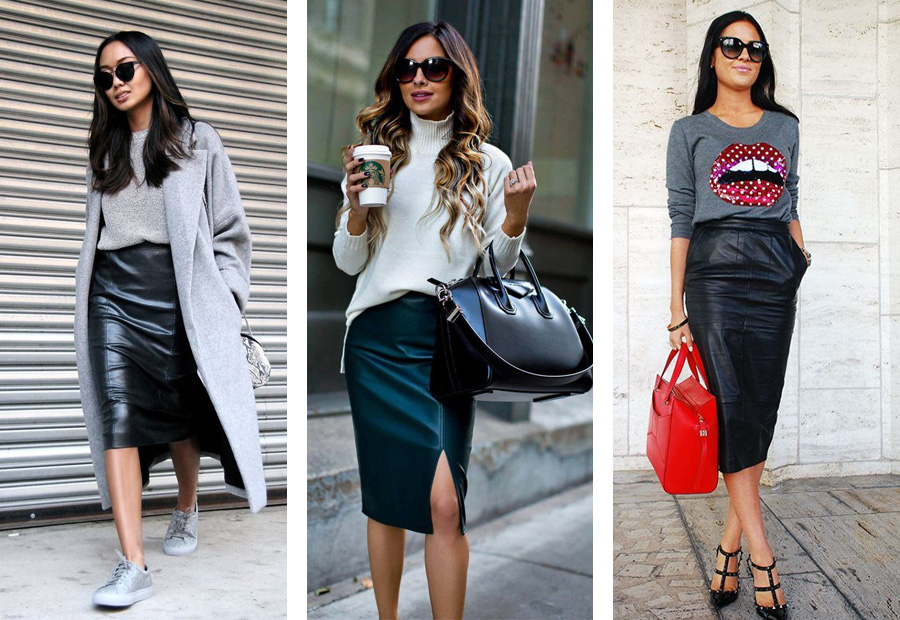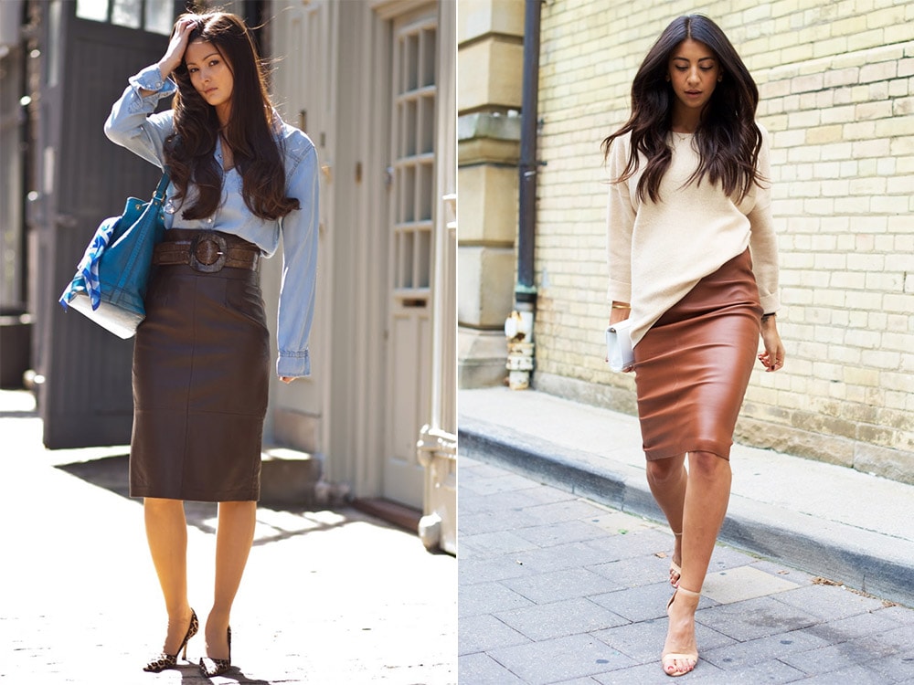 Кожа, натуральная или искусственная, — материал разнообразный, интересный и удобный в носке. С чем носить кожаную юбку-карандаш можно определить по ее цвету, а также случаю, для которого вы решили ее надеть.