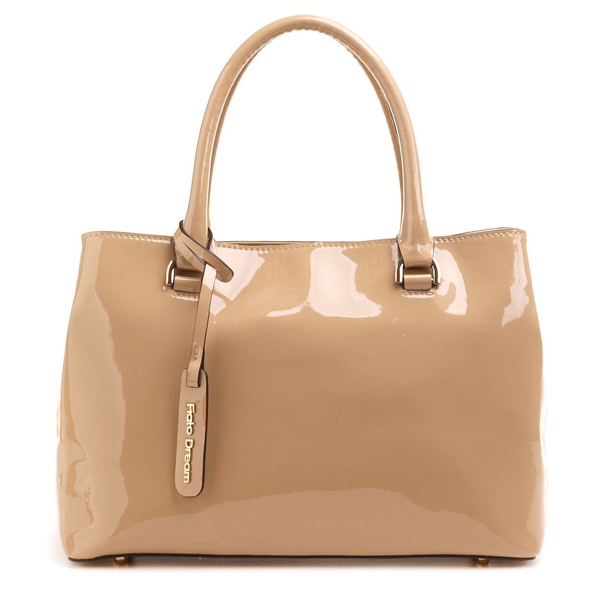 Не бойтесь экспериментировать и создавать свой неповторимый стиль с помощью бежевой лаковой сумки.