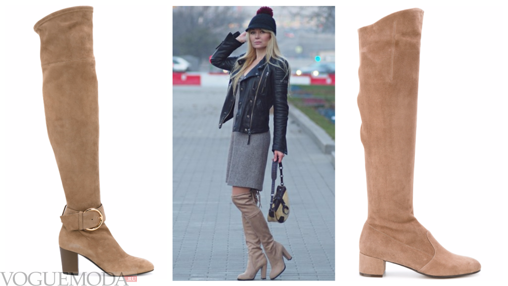 Сапоги из замши приобретаются на холодный сезон, поэтому главным предметом гардероба, сочетание с которым нужно просчитать — верхняя одежда.
