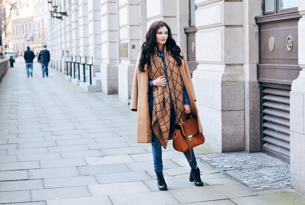 Большие и тяжелые ботильоны на площадке прекрасно выглядят в образах с объемными свитерами и длинными пальто.