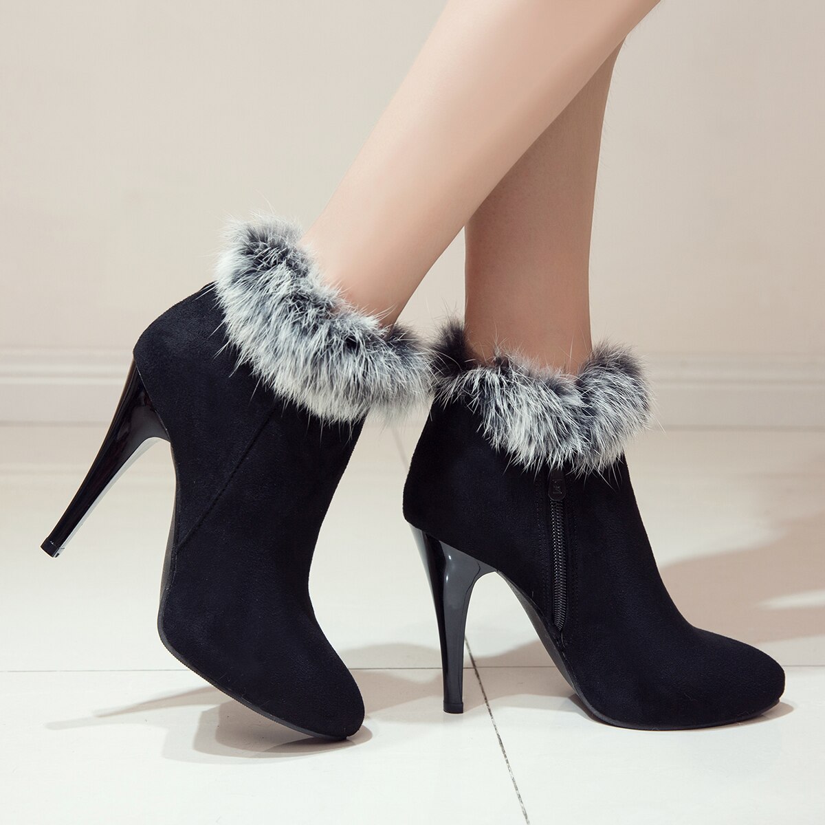 В ботильонах может присутствовать как натуральный, так и искусственный мех. Благодаря богатому разнообразию его видов создается элегантная и оригинальная обувь на любой вкус. В качестве натурального меха популярны: кролик, песец, лиса, норка, цигейка. Они смотрятся богато и привлекательно, создают комфорт и тепло в морозную погоду. Искусственный мех также распространен среди женщин, стремящихся выглядеть стильно в любых условиях. Особенно уместно он смотрится в качестве дизайнерской отделки. Есть модели, в которых используются несколько видов меха.