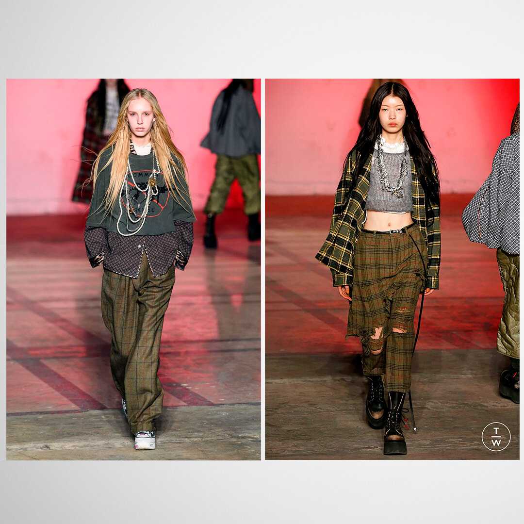 Для этого стиля характерно использование рваных колготок из капрона, одетые под юбку или кожаный сарафан длины мини, джинсовых вещей, принты в клетку или с абстракцией. В образ в стиле гранж идеально впишется куртка-косуха из кожи такой расцветки.