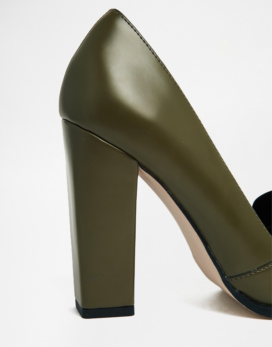 В продаже можно встретить обувь защитного цвета. Это могут быть ботфорты, ботильоны, туфли-лодочки и другие. Такую обувь нужно, не раздумывая, приобретать для своего гардероба. Она способна дополнить и украсить многие луки и стать универсальной.