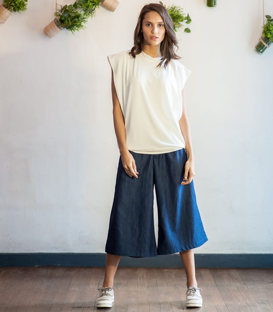 Кюлоты из денима с легкостью добавят разнообразия в ваш гардероб. Ведь это не что иное, как укороченная версия джинсов с широкими штанинами. Если вы страстно любите деним и при этом хотите быть в тренде – эти брюки для вас.