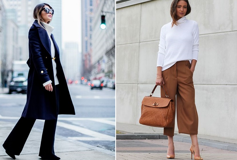 Классические брюки тоже отлично смотрятся с черной водолазкой. Да другие фасоны брюк разных расцветок, вы тоже можете надеть.