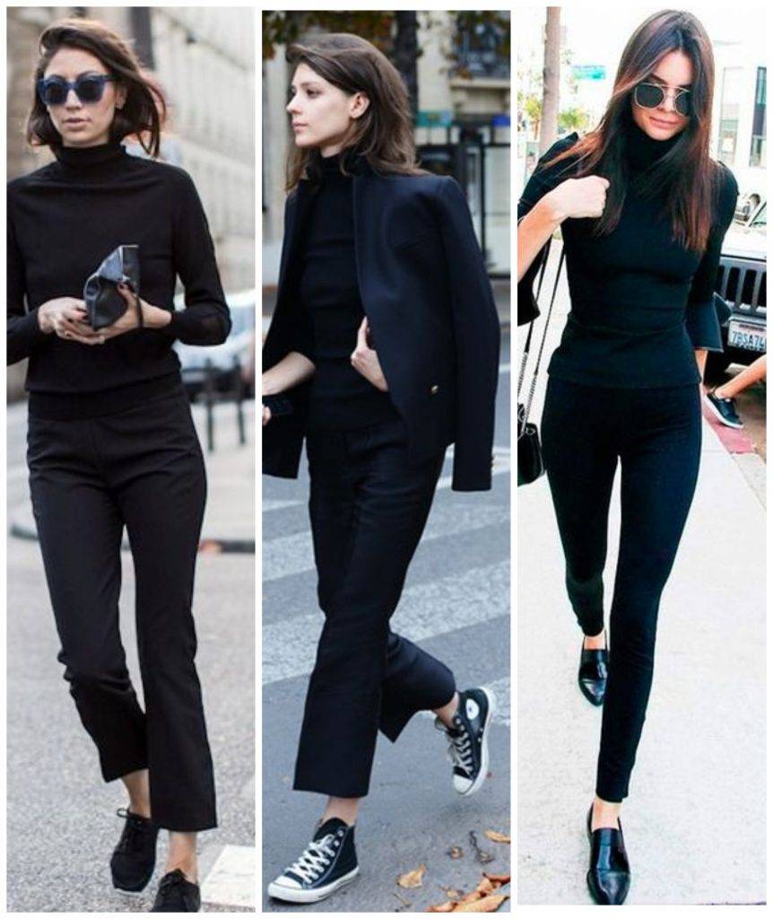 Черная водолазка станет прекрасной базой для комплектации такого наряда. Наденьте удобные брюки с кулиской, похожие на классические спортивные штаны, и белые кроссовки. К облегающей простой водолазке черного цвета подойдет джинсовая куртка. Этого достаточно, чтобы вписаться в городской стиль.