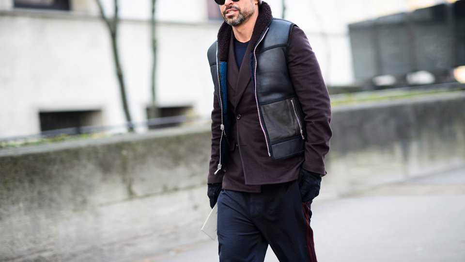 Чтобы рискнуть, как этот мужчина, который сочетает спортивные штаны, пиджак и кожаную куртку, надо не раз обжечься и иметь большой опыт самых экстравагантных импровизаций. Но, как по мне выглядит очень необычно. Во многом зависит от твоего места нахождения и круга общения. Попробовать однозначно стоит.