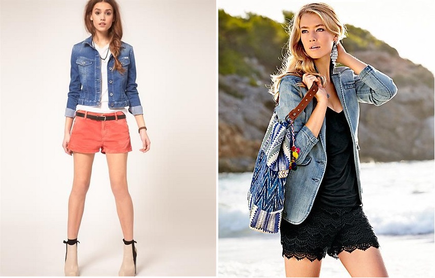 Стилисты предлагают носить джинсовый жакет с шортами, бриджами или капри, сшитыми из денима или любого другого вида ткани. Можно надеть жакет с костюмом и майкой.