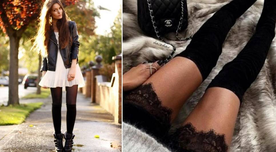 Если хочется надеть чулки поверх, то выбирайте короткую длину, как на фото ниже. Так, ваш образ будет смотреться гармонично.