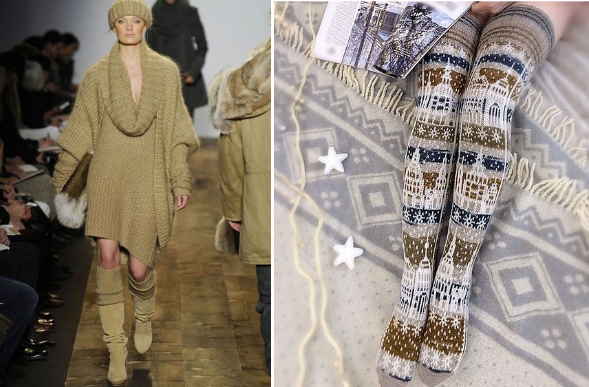 Теплый, удобный и красивый образ! Ботфорты защитят ноги от холода, а гетры в таком случае лучше выправить еще немного выше – чтобы их край был виден из голенища сапог. Конечно, понадобятся довольно длинные гетры.