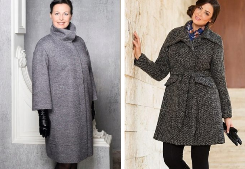 Полным девушкам стоит выбирать тёмные оттенки серого, позволяющие добавить фигуре стройности, сделать её более утончённой. Подходящими будут модели свободного кроя, которые дополняются широким поясом.