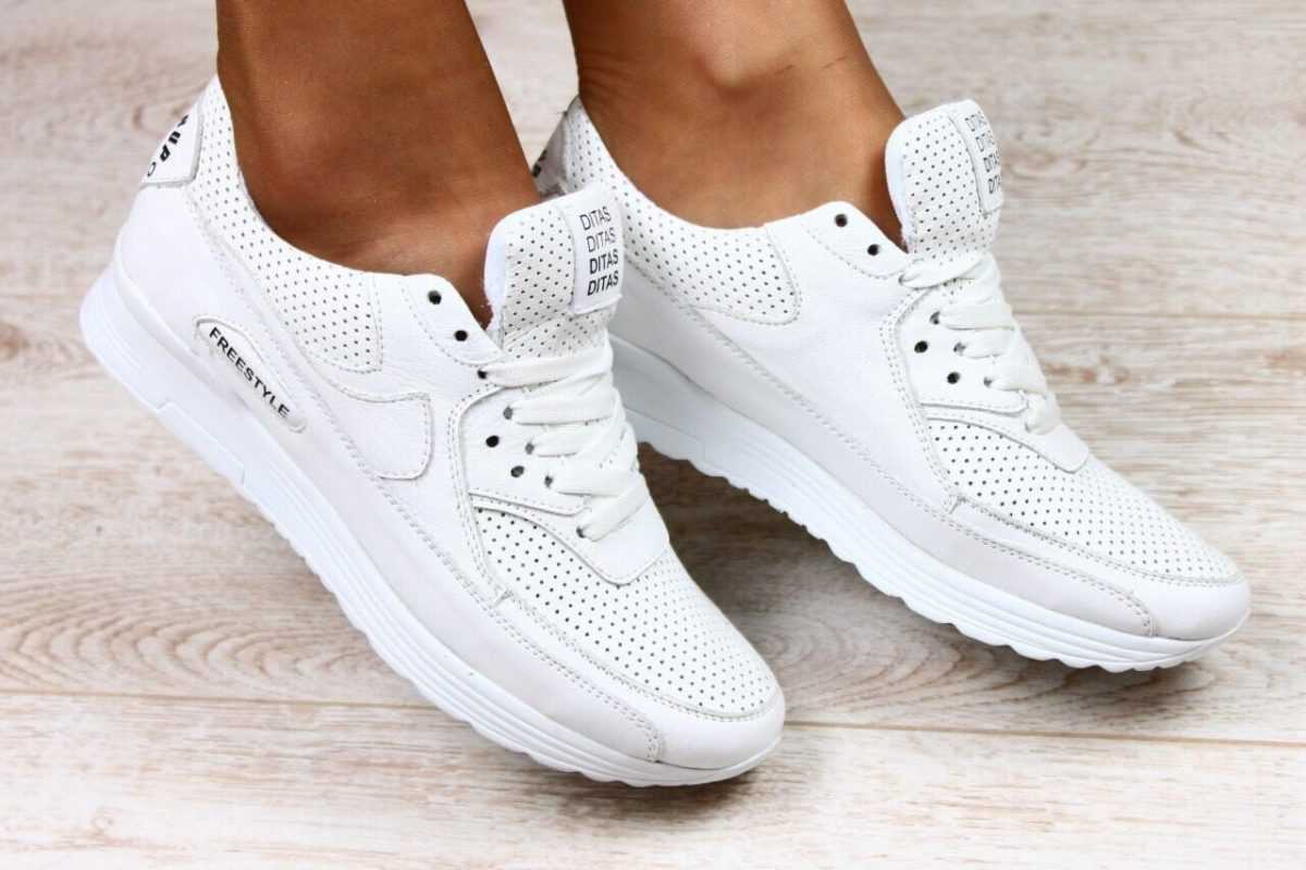 По-прежнему остаются актуальными белые кроссовки. Модель именно такой расцветки прекрасно сочетается с классическим стилем одежды.